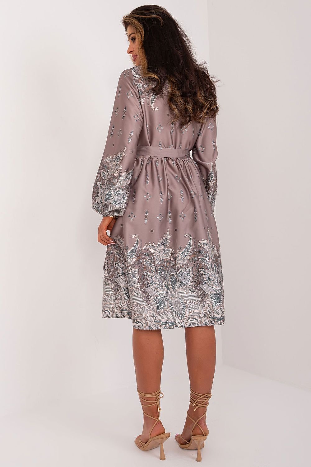 O rochie de cocktail cu o expresie elegantă, ideală pentru multe ocazii, de la muncă la întâlniri de afaceri. Croiala sa clasică, cu mâneci lungi și partea de jos evazată, îi conferă subtilitate și un farmec unic. Perfectă atât pentru întâlniri de afaceri, cât și pentru situații mai formale. Rochia se distinge printr-un imprimeu interesant, care îi adaugă caracter și originalitate, subliniind în același timp stilul individual al purtătoarei. Materialul principal utilizat pentru producția sa este o combinație de bumbac și nailon, care asigură confortul purtării și durabilitatea materialului. Lungimea midi conferă rochiei eleganță și clasă, subliniind silueta feminină. Decolteul în formă de inimă este subtil și feminin, adăugând delicatețe și grație rochiei. În plus, rochia a fost prevăzută cu o căptușeală pentru o mai bună potrivire și o purtare confortabilă. Este alegerea perfectă pentru femeile care apreciază eleganța, confortul și stilul individual.